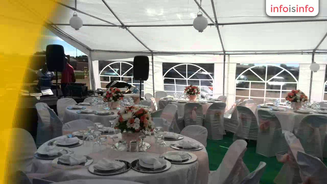 Tiffany chairs, tables, dance floors, all kinds of tents, flooring, cocktail tables and chairs, white lounges and ottomans).
